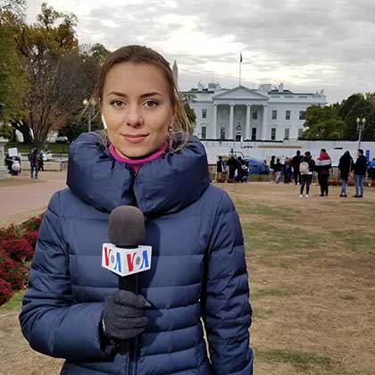 VOA Ukrainian journalist Kateryna Lisunova reporting from the U.S. Capitol. The service is responsible for explaining developments in U.S. national and foreign policy to its Ukrainian-speaking audience.